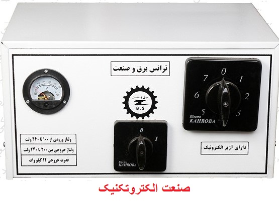 ترانس سلکتوری مدل برق و صنعت . به صورت تقویت برق دستی یا غیر اتومات هست که ولتاژ برق ضعیف شهر را به صورت دستی تنظیم می کند و با سلکتوری که جلوی دستگاه هست .ولتاژ برق را از 100 ولت تقویت کرده و به 220 ولت برق نرمال شبکه میرساند .